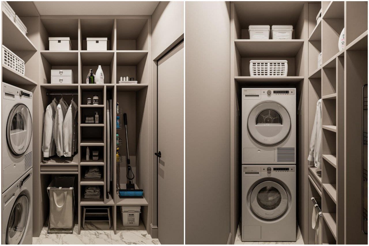 Чтобы реализовать данную идею, мы снесли перегородку между лоджией и кухней-гостиной, тем самым освободив место для столовой, где задействовали панорамное остекление. Планировка получилась логичной и функциональной, благодаря чему освободилось место в лоджии, которое мы организовали под зону гриль для отдыха наших клиентов.