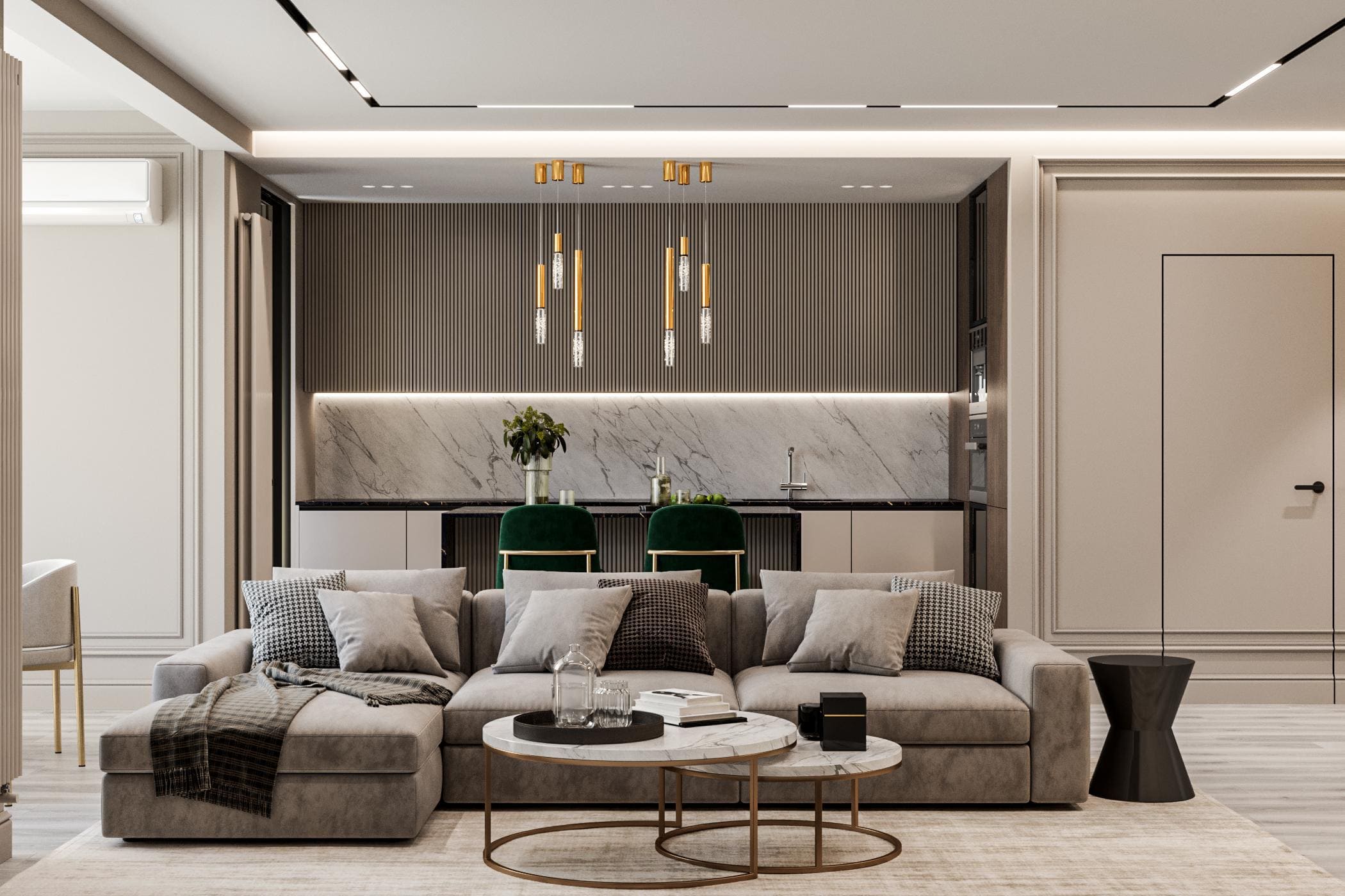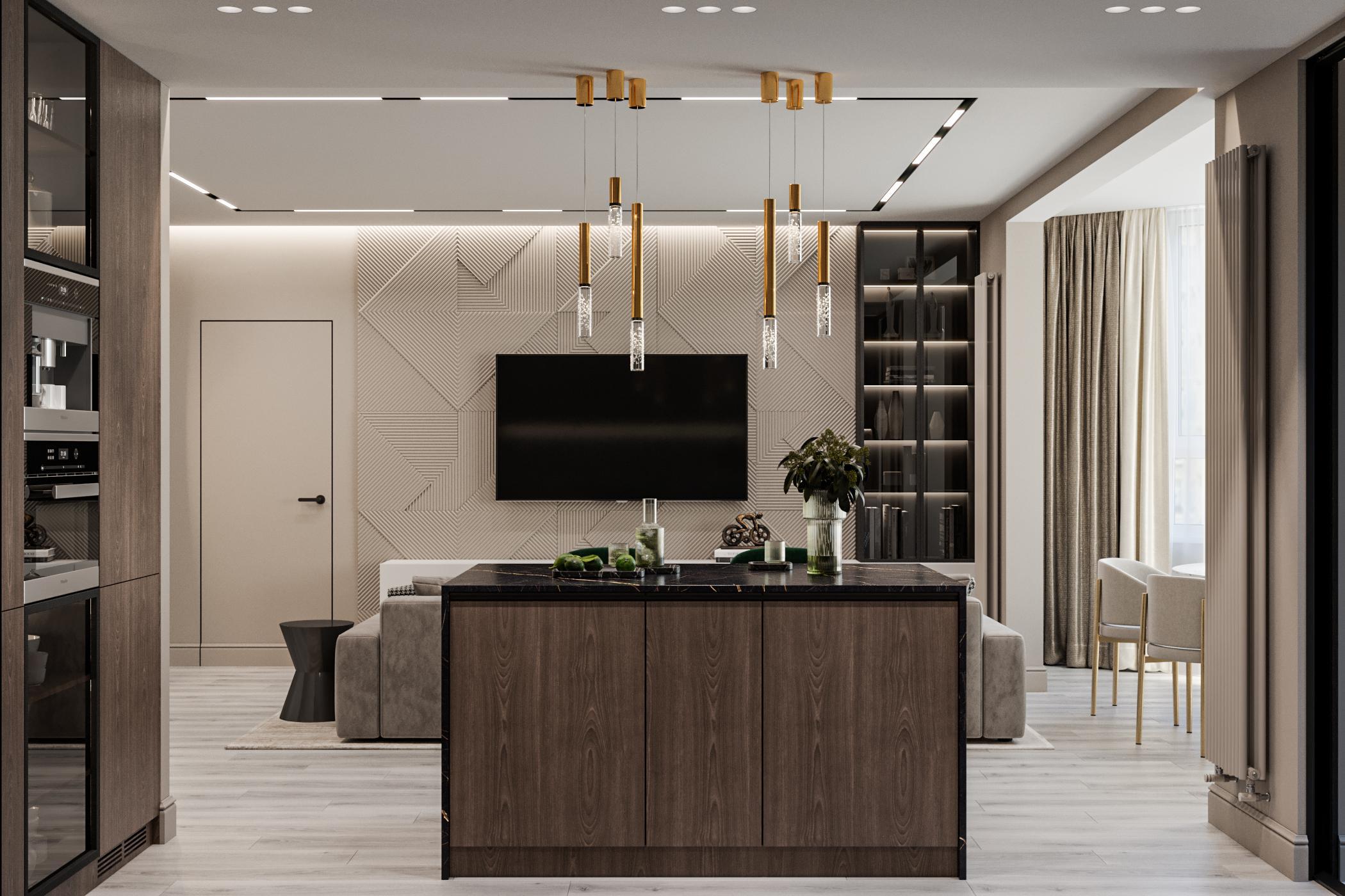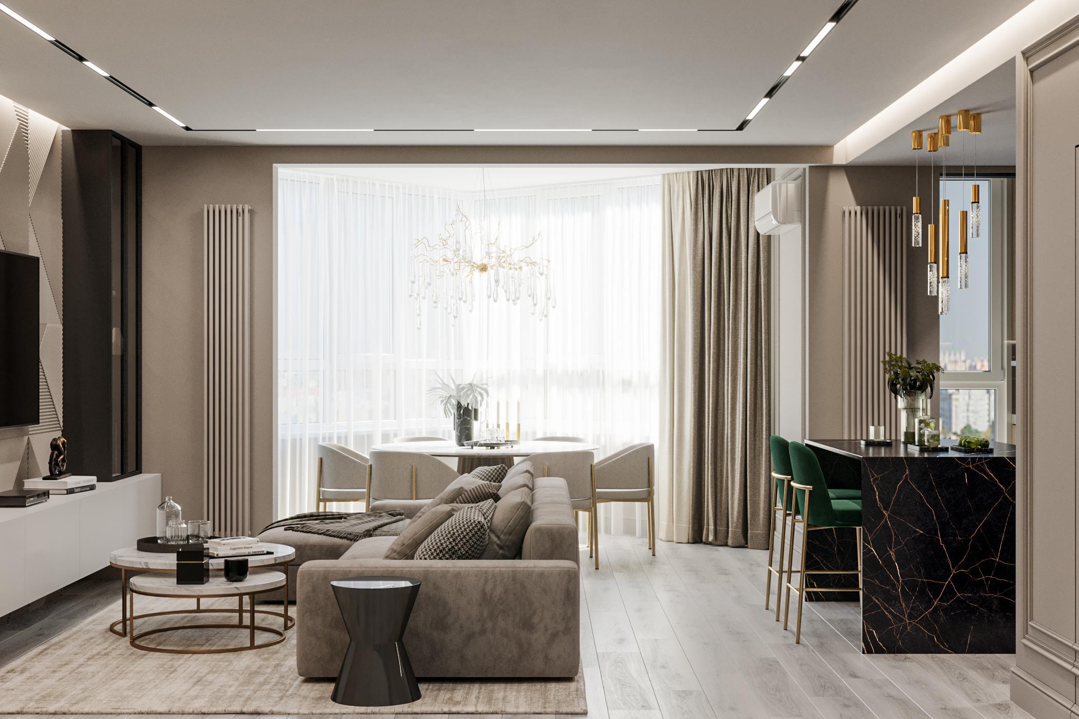 Современная классика в квартире с открытой планировкой