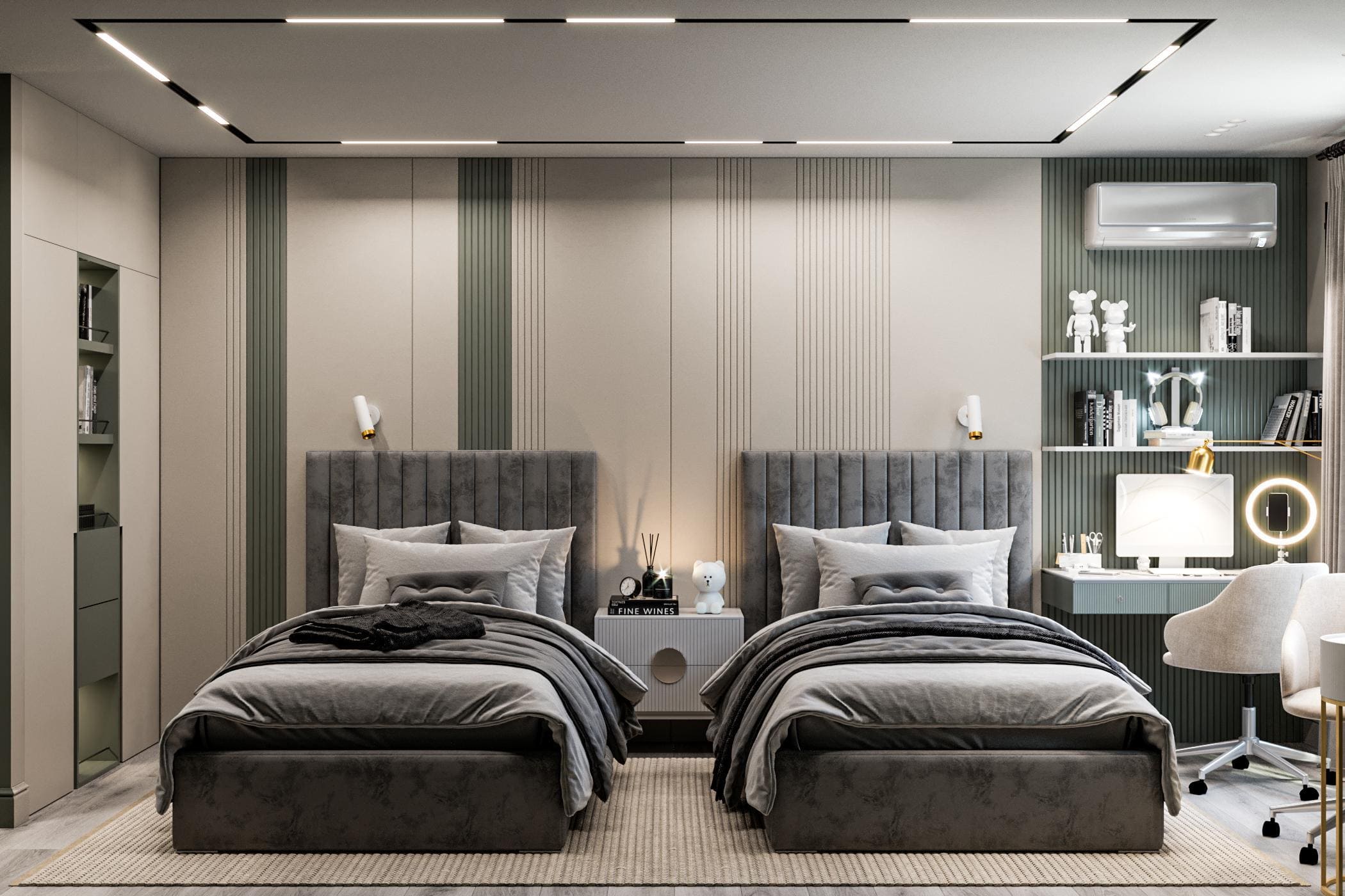 Контрастный интерьер со стеной-водопадом